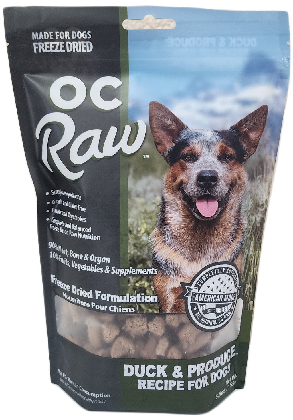 Your favorite OC RAW in a freeze dried form. It still has all the nutrients and benefits for your dog without the hassle of freezing.