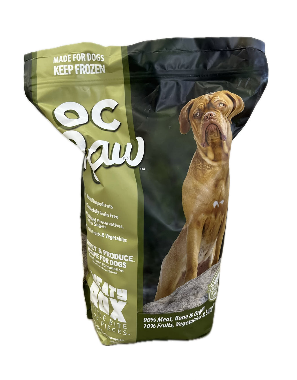 A raw food diet means fewer vet visits making happier pet parents. OC Raw Dog Food uses only premium ingredients—all-natural, whole muscle, organ meat, and farm fresh produce.