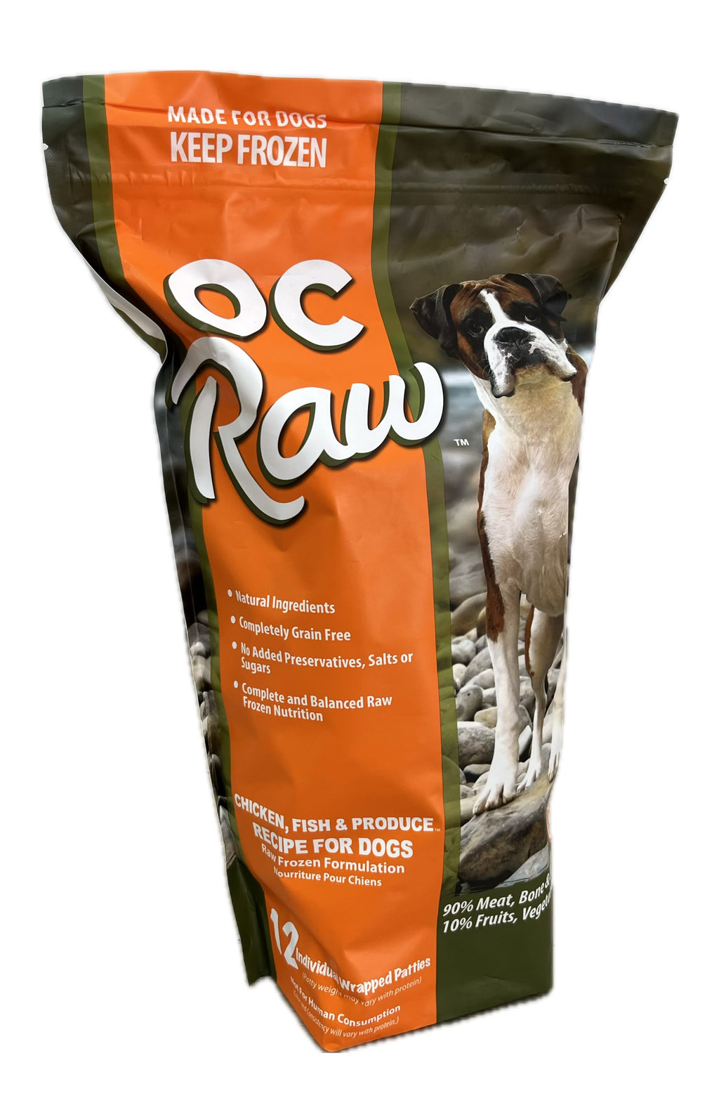 A raw food diet means fewer vet visits making happier pet parents. OC Raw Dog Food uses only premium ingredients—all-natural, whole muscle, organ meat, and farm fresh produce.